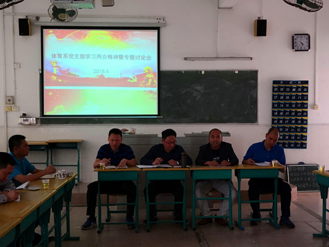 根据学校党委的布置,体育系支部于2018年4月10日下午在高州校区师训楼201室召开支部会议,进一步的开展学习、宣传和贯彻两会精神,学习、讨论《中共中央 国务院关于全面深化新时代教师队伍建设改革的意见》和《广东出台“新师范”建设实施方案》、李红军许志晖新春寄语全市教育工作者的讲话。学校“两学一做”活动第五督导组组长、副院长吴东同志参加了会议并作了讲话。