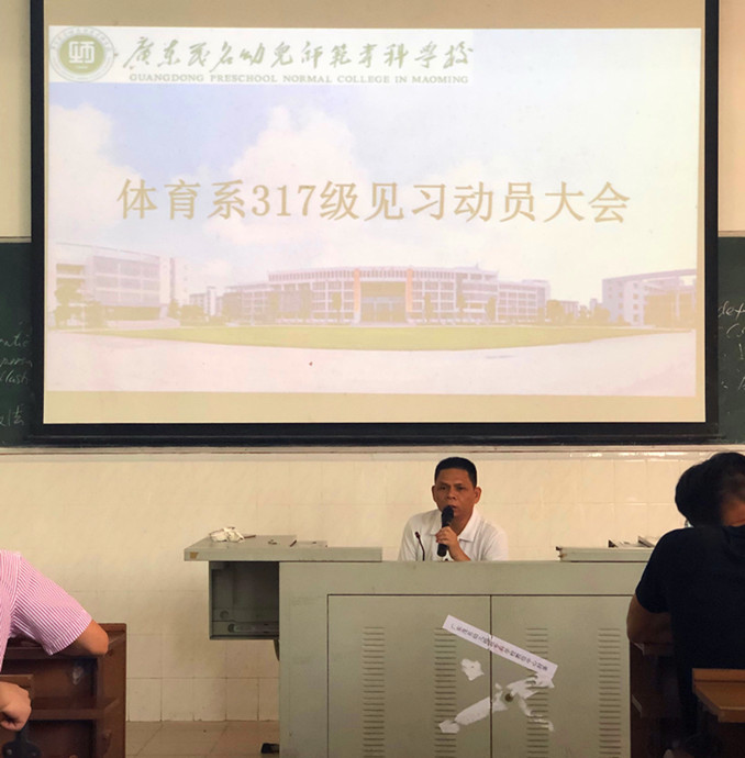 为了进一步落实见习的各项工作,根据学校和体育系教育教学计划的要求,体育系于2019年4月24日下午,在师训楼一楼阶梯室召开317级见习动员大会,本次会议由黄国良主任主持,辅导员黄海林、班主任谢明秋、马雪、刘建锐、唐宁宁、郭露诗和317社会体育1、2、3班全体同学参加了此次会议。