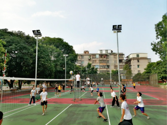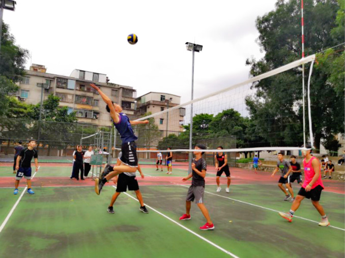 一声哨响之后,展开了精彩的比拼。学生们各施绝技,发球、起跳、拦网、扣球,每一次精彩的传球与得分都引来阵阵欢呼。助威声、欢呼声,铿锵有力,此起彼伏。队员们展示了精湛的技术和熟练的战术配合。比赛场上,队员们个个精神抖数,配合默契,气氛文明热烈,赢得了场边观众的阵阵喝彩。经过几周的激烈角逐,6月21日下午,比赛圆满落幕。