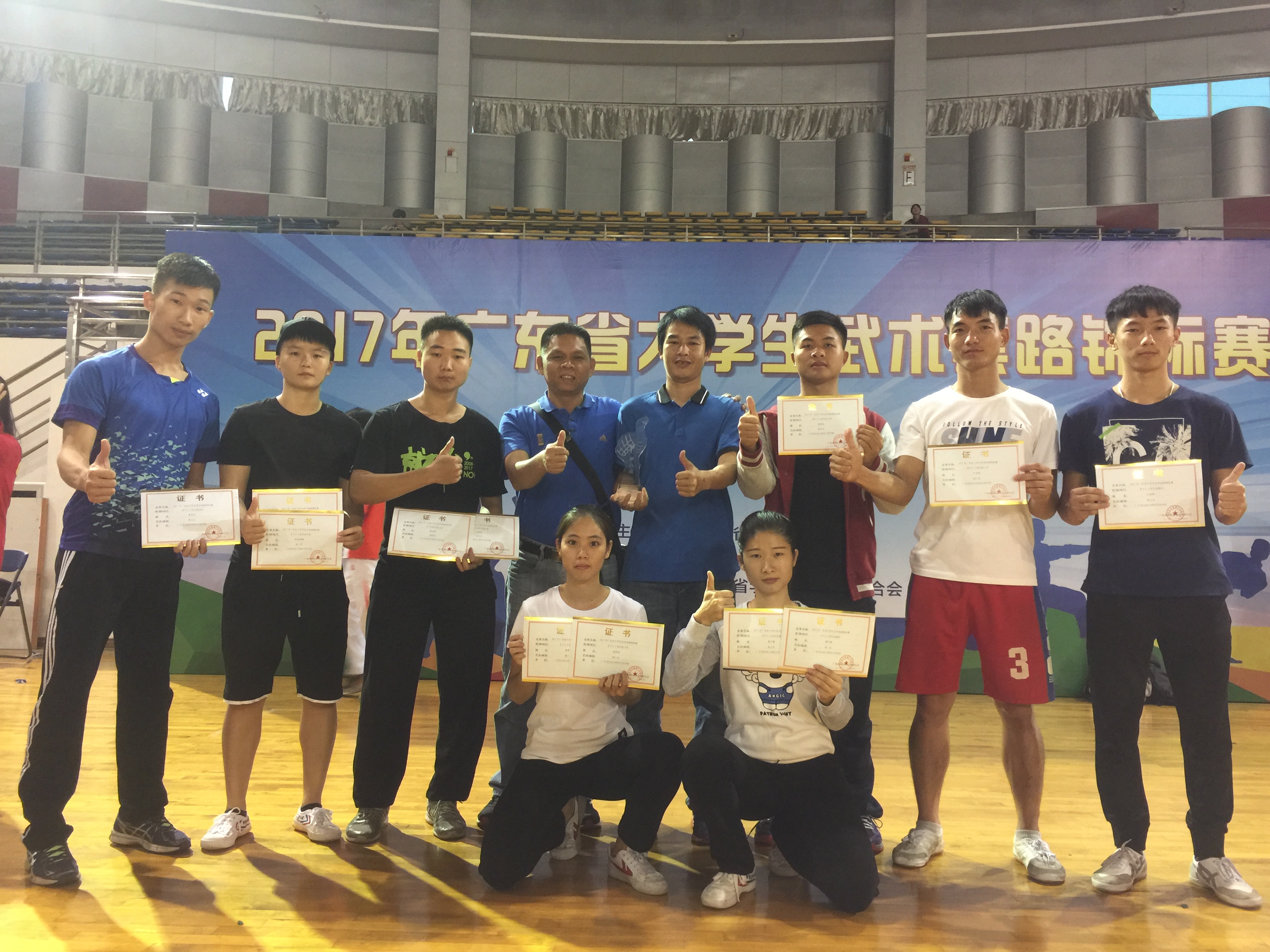2017年参加广东省大学生武术套路锦标赛团体总分第八名